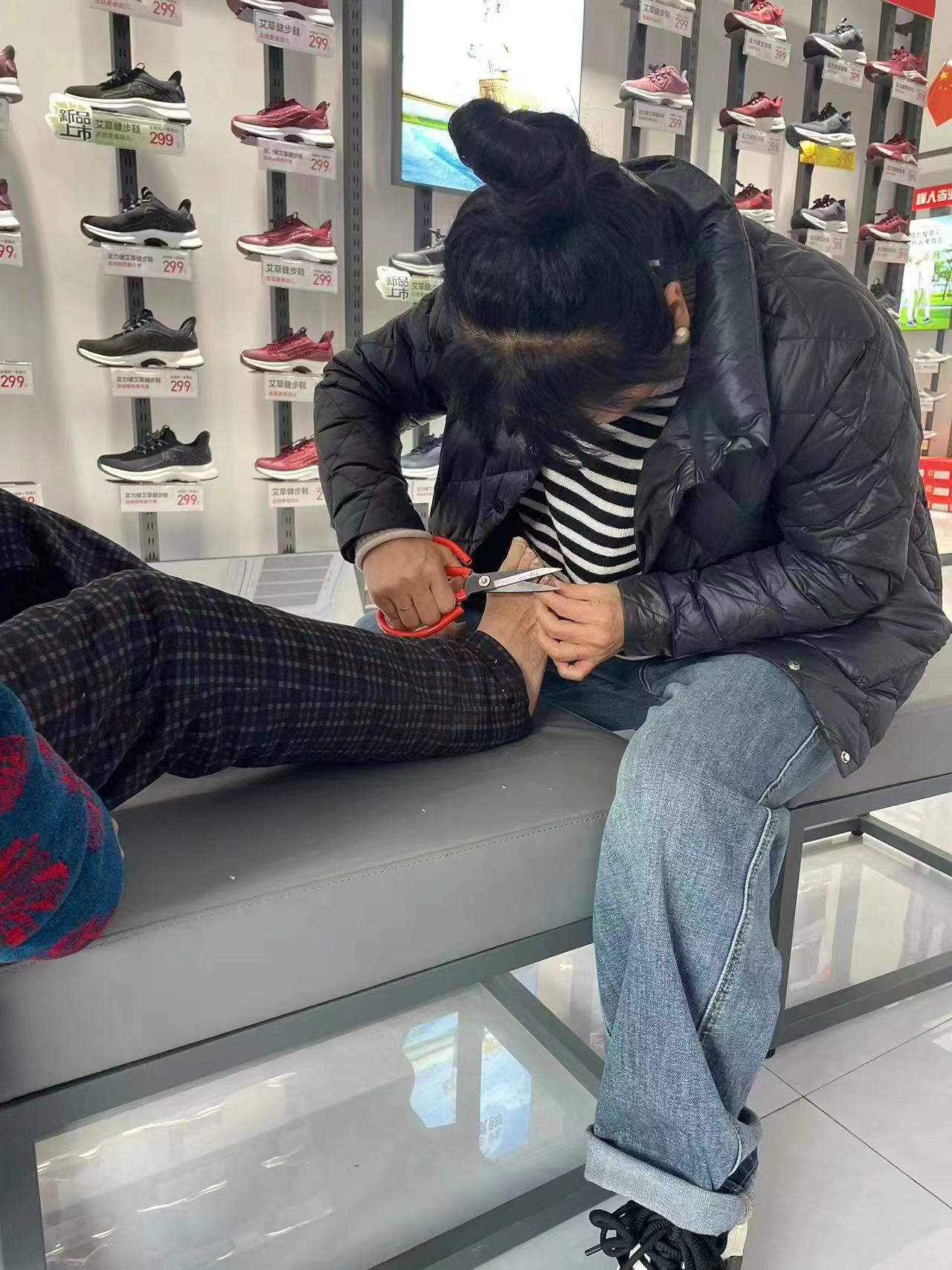 这样的服务细节还有很多很多,他们会站在门外,等有要进店的老人就会搀扶他们上台阶,在客人出店的时候,不管是否买鞋子,都会搀扶老人下台阶,甚至在街边的门店,会搀扶行动不便的老人过马路。